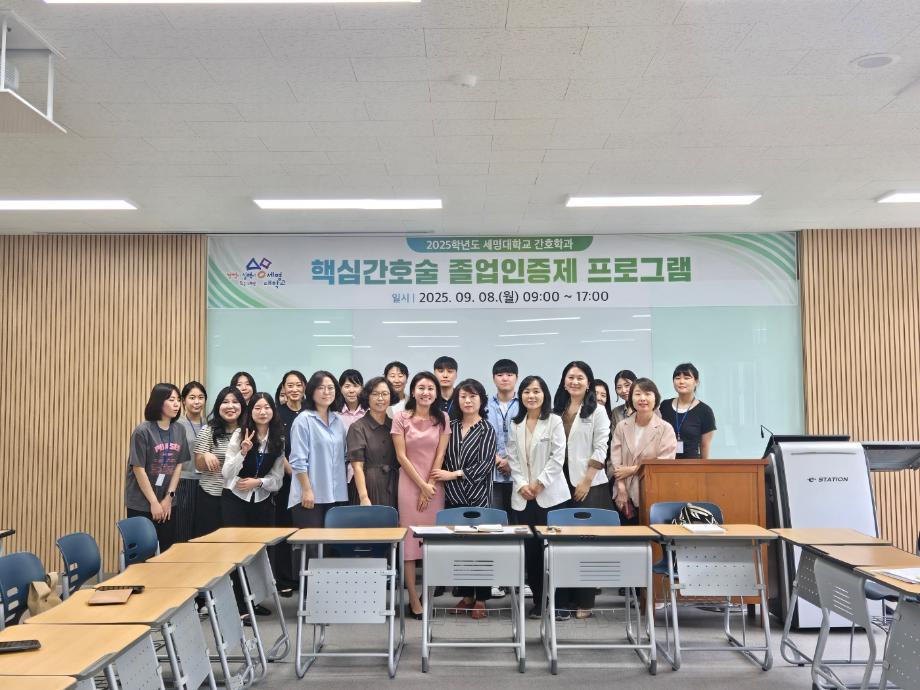 본문 시작 홈으로 커뮤니티 학과소개 교수소개 교육과정 학과소식 학과특성화 사업 커뮤니티 홈페이지가이드 포토갤러리 학사일정 포토갤러리 학생회 학과동아리 학과 취업정보 동창회 학과운영개선의견 발전기금 포토갤러리 페이스북 트위터 프린트 🎓 [2025학년도 핵심간호술 졸업인증제 – 선배님들의 모교 방문] 간호학과 1776 2025-09-08 오늘 간호학과에서는 졸업을 앞둔 4학년 학생들의 핵심간호술 졸업인증제를 위해 뜻깊은 시간을 가졌습니다. 바쁜 일정 속에서도 모교를 찾아와 후배들을 응원해주시고, 실무 경험에서 우러나온 조언과 따뜻한 격려를 전해주신 선배님들께 진심으로 감사드립니다. 목록 이전미래 간호사의 진로와 역할 전공 특강 다음 🎉 세명대학교 간호학과 30주년 기념행사 🎉 Nursing Bridge: 간호, 세대를 잇다 담당부서 : 간호학과 담당자 : - 연락처 : 043-649-1357 최종수정일 : 2024-10-26 만족도조사 만족도 조사 이 페이지에서 제공하는 정보에 대하여 만족하시나요? 매우만족 만족 보통 불만족 매우불만족