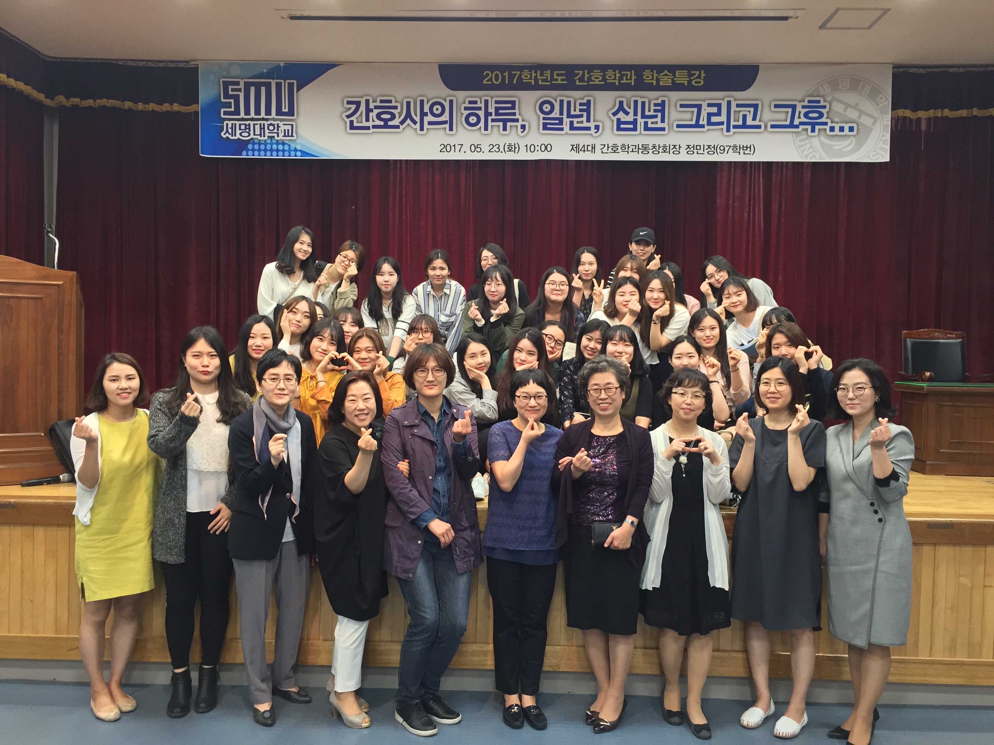 본문 시작 홈으로 커뮤니티 학과소개 교수소개 교육과정 학과소식 학과특성화 사업 커뮤니티 홈페이지가이드 포토갤러리 학사일정 포토갤러리 학생회 학과동아리 학과 취업정보 동창회 학과운영개선의견 발전기금 포토갤러리 페이스북 트위터 프린트 2017학년도 간호학과 학술특강 "간호사의 하루, 1년, 10년 그리고 그후" 운영자 11051 2017-05-25 2017학년도 간호학과 학술특강 - 주제: "간호사의 하루, 1년, 10년 그리고 그후"- 강사 : 정민정선생님 - 세명대학교 97학번 - 제 4대 간호학과 동창회장 - 서울아산병원 VIP병동 간호사 - 일시: 2017년 5월 23일(화) 10:00- 대상: 간호학과 학생 전체 목록 이전선배와의 대화 다음 제 3대 간호학과 동창회장 공로패 전달식 담당부서 : 간호학과 담당자 : - 연락처 : 043-649-1357 최종수정일 : 2024-10-26 만족도조사 만족도 조사 이 페이지에서 제공하는 정보에 대하여 만족하시나요? 매우만족 만족 보통 불만족 매우불만족