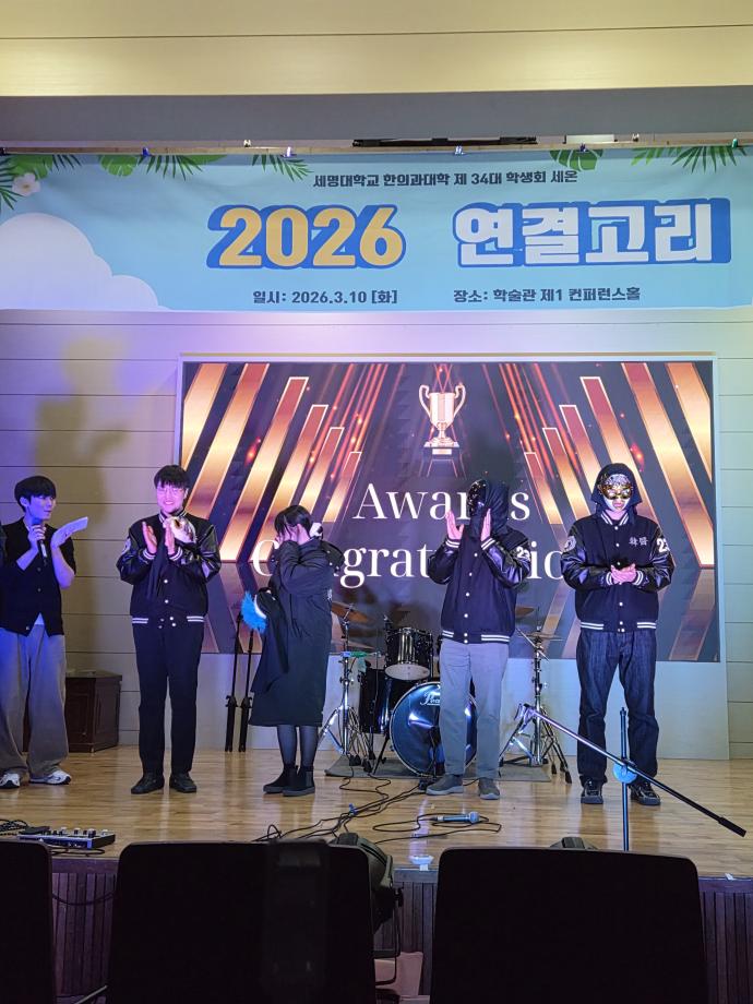 본문 시작 홈으로 대학소식 대학소개 교수소개 대학과정 커뮤니티 대학원 대학소식 홈페이지가이드 포토갤러리 학과공지 포토갤러리 발전기금 위원회 관련사이트 포토갤러리 페이스북 트위터 프린트 2026년 연결고리 행사 한의과대학 142 2026-03-13 2026년 3월 10일 화요일 한의과대학에서는 신입생들의 학교생활 적응을 돕기 위해 한의대 학생회 주관으로 재학생들과 친해지기, 한의대 동아리 소개 및 공연 등으로 이루어진 연결고리 행사를 개최하였습니다. 신입생들과 재학생들에게 소중한 추억으로 남았기를 바랍니다. 목록 이전2026년 한의과대학 신입생 대상 꿈 설계학기 진행 담당부서 : 한의과대학 담당자 : - 연락처 : 043-649-1701 최종수정일 : 2024-10-26 만족도조사 만족도 조사 이 페이지에서 제공하는 정보에 대하여 만족하시나요? 매우만족 만족 보통 불만족 매우불만족