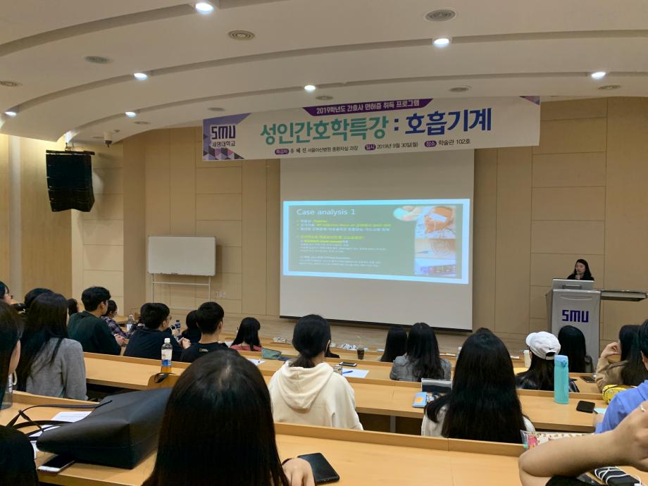 본문 시작 홈으로 학과특성화 사업 학과소개 교수소개 교육과정 학과소식 학과특성화 사업 커뮤니티 홈페이지가이드 2019년 2026년 2025년 2024년 2023년 2022년 2021년 2020년 2019년 2018년 2017년 2016년 2015년 2014년 2019년 페이스북 트위터 프린트 성인간호학특강 : 호흡기계 간호학과 7732 2019-09-30 1. 일시 : 2019년 9월 30일(월) 2. 특강자 : 서울아산병원 중환자실 유혜진 과장 3. 장소 : 학술관 102호 4. 내용 : 성인간호학 호흡기계 학습 내용 중 이해도가 낮은 인공호흡기 부분 심층 대비 목록 이전Peritoneal Dialysis Simulator Course 다음 성인간호특강 : 심혈관계 담당부서 : 간호학과 담당자 : - 연락처 : 043-649-1357 최종수정일 : 2024-10-26 만족도조사 만족도 조사 이 페이지에서 제공하는 정보에 대하여 만족하시나요? 매우만족 만족 보통 불만족 매우불만족