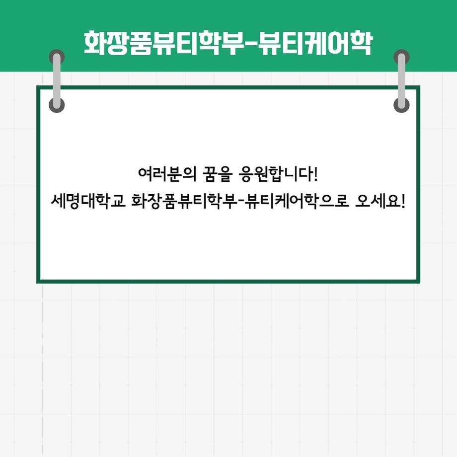 본문 시작 홈으로 커뮤니티 학과소개 교수소개 학과과정 커뮤니티 대학원 홈페이지가이드 포토갤러리 공지사항 채용정보 포토갤러리 Youtube 바로가기 Instargram 바로가기 Blog 바로가기 Facebook 바로가기 포토갤러리 페이스북 트위터 프린트 세명대학교 화장품뷰티학부(뷰티케어학) 2022학년도 정시모집 안내 (2) 뷰티케어학 2174 2022-01-14 뷰티케어학 2022학년도 정시모집 안내입니다~! 목록 이전세명대학교 화장품뷰티학부(뷰티케어학) 2022학년도 정시모집 안내 (1) 다음 RC관 2층 스킨케어 실습실