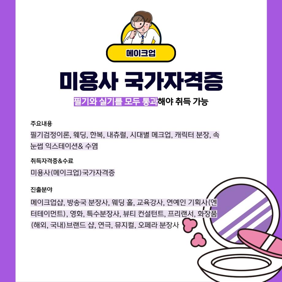 본문 시작 홈으로 커뮤니티 학과소개 교수소개 학과과정 커뮤니티 대학원 홈페이지가이드 포토갤러리 공지사항 채용정보 포토갤러리 Youtube 바로가기 Instargram 바로가기 Blog 바로가기 Facebook 바로가기 포토갤러리 페이스북 트위터 프린트 세명대학교 뷰티케어학과 졸업시 취득 가능한 국가자격증 TOP 5 뷰티케어학 2242 2022-01-21 세명대학교 뷰티케어학과 졸업시 취득 가능한 국가자격증 TOP 5 입니다! 관심 있으신 분들은 한번씩 보셔도 괜찮을거같아요~~:) 목록 이전[충북바이오헬스산업] 2021 비교과과정 피부미용사 교육 특강 다음 세명대학교 뷰티케어학과 졸업시 취득 가능한 국가자격증 TOP 5