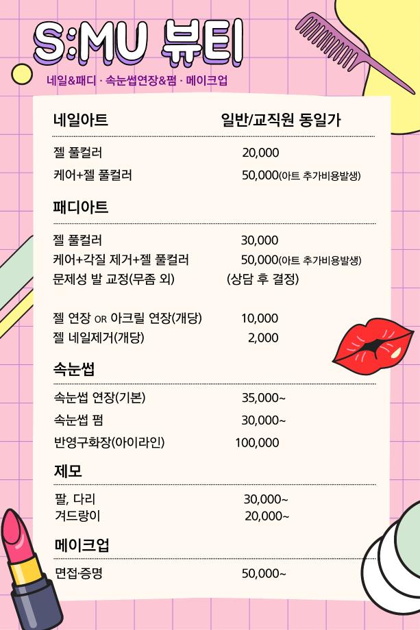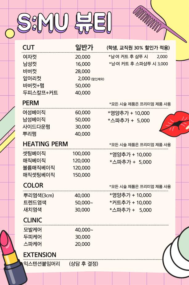 본문 시작 홈으로 커뮤니티 학과소개 교수소개 학과과정 커뮤니티 대학원 홈페이지가이드 포토갤러리 공지사항 채용정보 포토갤러리 Youtube 바로가기 Instargram 바로가기 Blog 바로가기 Facebook 바로가기 포토갤러리 페이스북 트위터 프린트 세명대학교 S:MU 뷰티 살롱 OPEN 뷰티케어학 2983 2023-09-01 1. 오픈일 : 2023년 9월 1일 2. 이용안내 : 전화 or 네이버 예약 3. 할인 : 세명대학교 교직원 인증 시 할인 된 가격으로 이용하실 수 있습니다 4. 위치 : 뷰티케어센터 2층 5. 관련문의 : 043-649-7368 목록 이전재학생 모교방문단: 정신여자고등학교 다음 2023년도 2학기 개강총회
