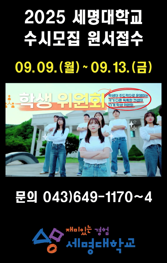 본문 시작 홈으로 커뮤니티 학과소개 교수소개 학과과정 커뮤니티 대학원 홈페이지가이드 포토갤러리 공지사항 채용정보 포토갤러리 Youtube 바로가기 Instargram 바로가기 Blog 바로가기 Facebook 바로가기 포토갤러리 페이스북 트위터 프린트 09.09 ~ 09.13 세명대학교 수시모집 기긴입니다. 뷰티케어학과 1961 2024-08-26 벌써 한 해의 절반이 넘게 지나가고 더위가 조금씩 가시니 또 다시 입시철이 다가왔네요! 세명대학교만의 특색있는 활동들과 원서접수에 관하여 알아볼까요?? 목록 이전뷰티케어학과 22학번 이수연학생이 미용사(네일)국가자격증 취득을 하였습니다~ 다음 예비smu뷰티케어학과 학생들 반가워요!!