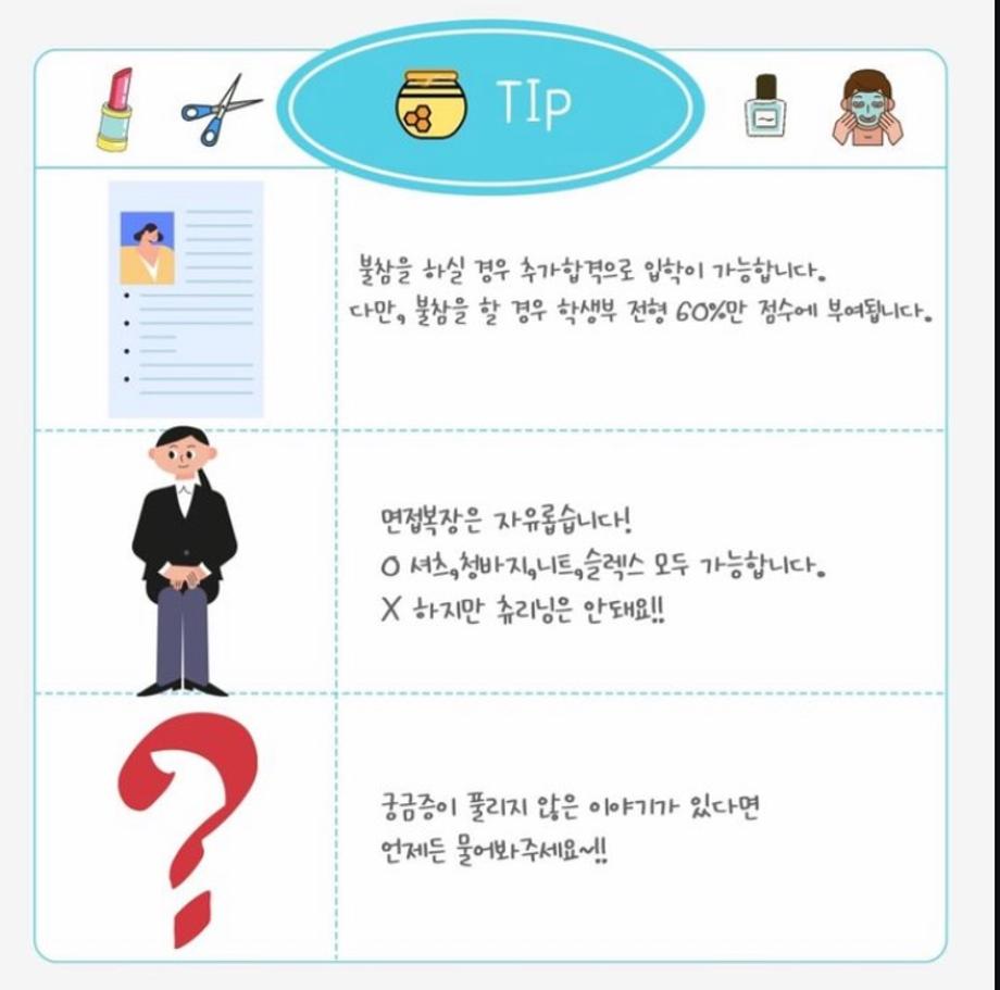 본문 시작 홈으로 커뮤니티 학과소개 교수소개 학과과정 커뮤니티 대학원 홈페이지가이드 포토갤러리 공지사항 채용정보 포토갤러리 Youtube 바로가기 Instargram 바로가기 Blog 바로가기 Facebook 바로가기 포토갤러리 페이스북 트위터 프린트 📣 세명대학교 “뷰티케어학과” 면접일은 2024.10.11(금)입니다! 바이오코스메틱학과 2025 2024-10-08 📣 세명대학교 “뷰티케어학과” 면접일은 2024.10.11(금)입니다! 1부-pm.1시/2부-pm.3시30분 총 두 타임으로 나눠서 진행될예정입니다! 면접 예상질문은 2024.10.7(월) 이전에 공지될 예정이니 자세한 내용은 세명대학교 홈페이지를 확인해주세요!! 목록 이전헤어기초커트1 다음 제5회 청주시장배 미용기술경연대회 금상,은상!