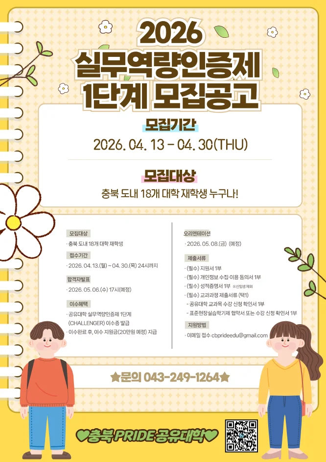 [충북PRIDE공유대학] 2026 실무역량인증제 학생 모집